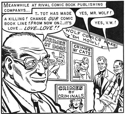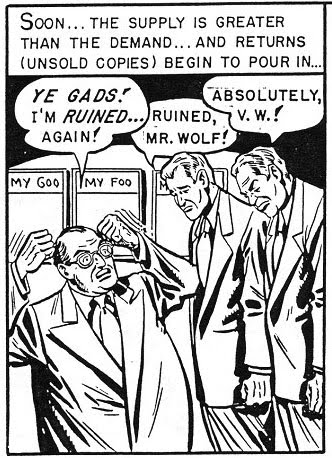 Now Feldstein introduces caricatures of his rivals. First Victor Fox, here named V.Wolf.