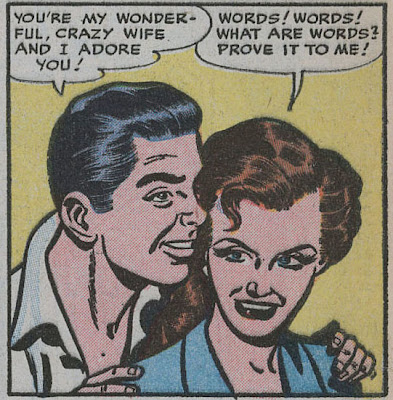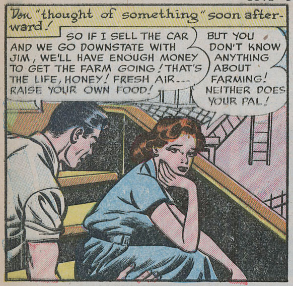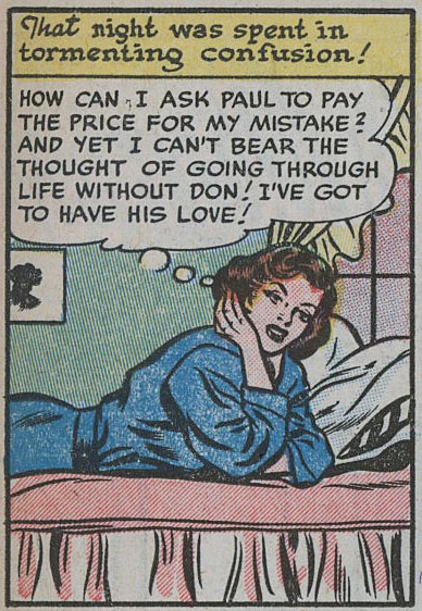 Michelle Nolan, who knows more about such things than I do, notes that of the 36 stories published in Love Confessions in 1953, this is the only one that doesn't end with the romantically afflicted in each others' arms.