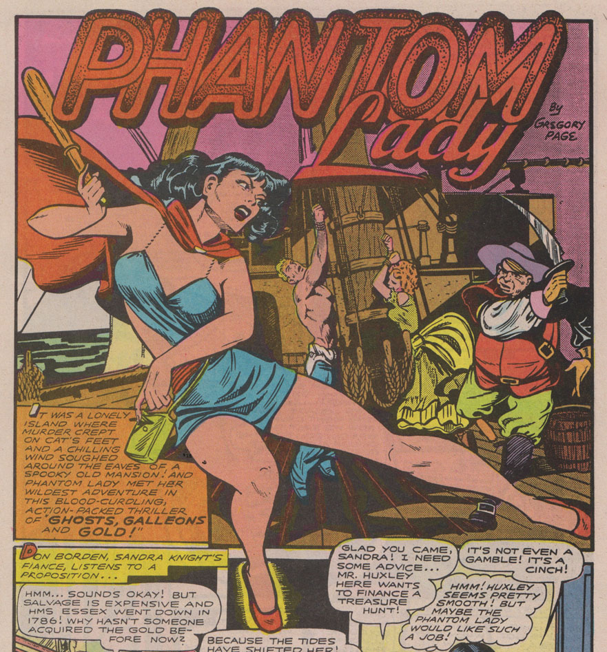 which is clearly modeled on this Matt Baker Phantom lady splash page from June 1948: