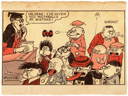 In fact, I would have been happy to tape portraits of these characters on my wall without them being required to say or do anything. I loved them as cartoon inventions, to phrase it in a way that would have been beyond my understanding. To me they were pals named Danny, Plug, Smiffy, Toots and Sid, Wilfrid, Erbert, Spotty and Fatty.