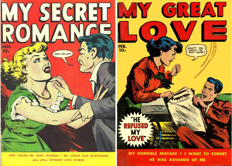 My Secret Romance #2 Mar'50, My Great Love #3 Feb '50But whatever's going on, it's never any of that sweet stuff you see on the Marvel covers above.